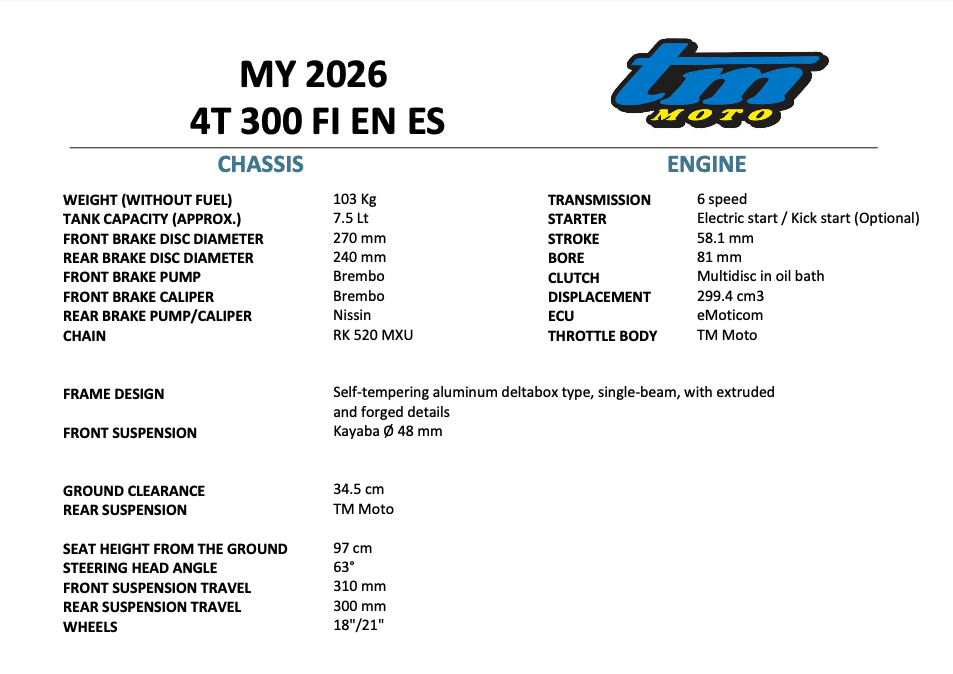 Muffler with the new “TM MOTO” logo to maximize the power output of the TM engine.