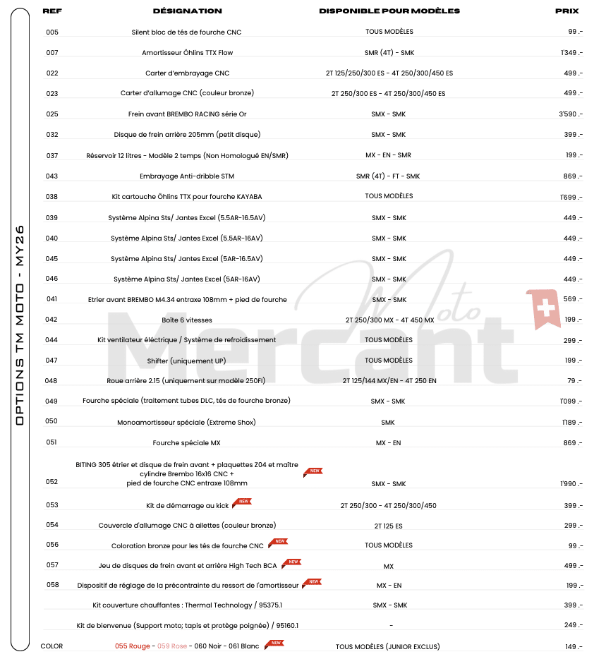 Customize your motorcycle with the plastic color of your choice! Available for all models (except Junior) for an additional fee of 149 CHF.